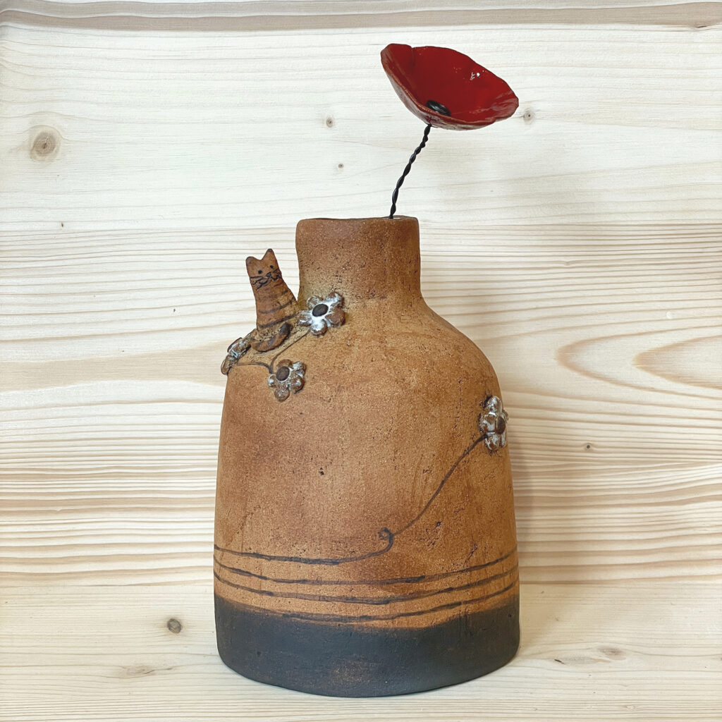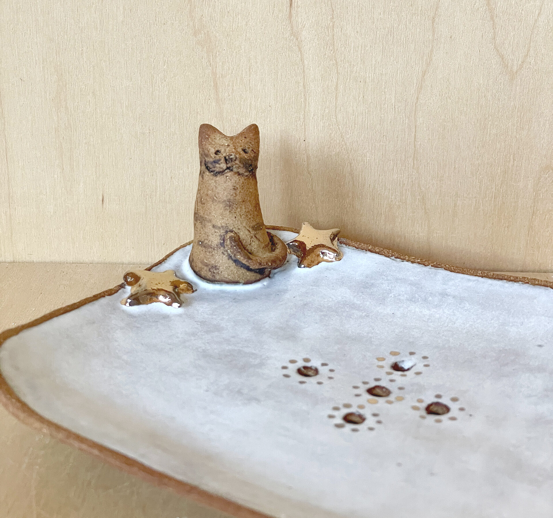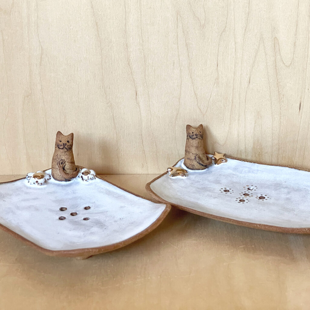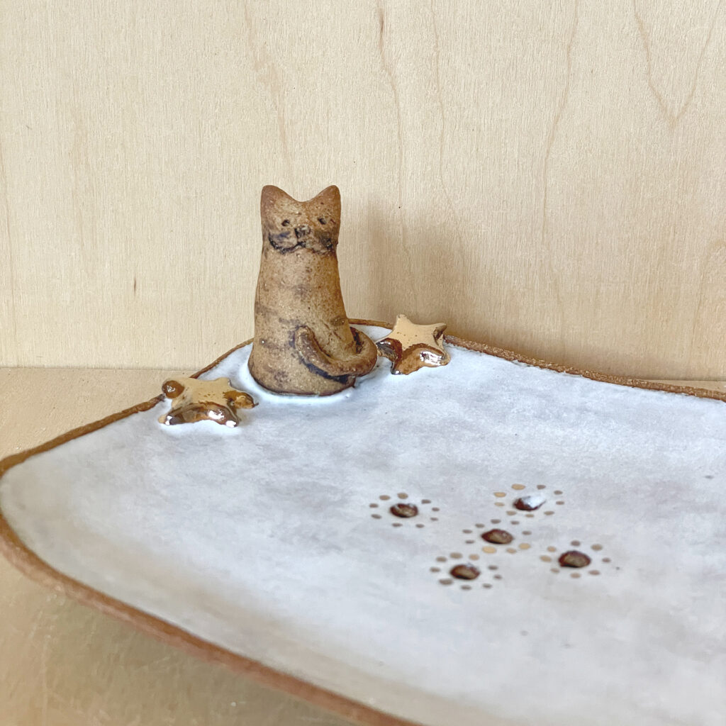 Porte savon chat avec touche d’or Vase chat / Grès et une touche d’émail blanc Photophore chat et hérisson Photophore chat et hérisson / Détail RETOUR